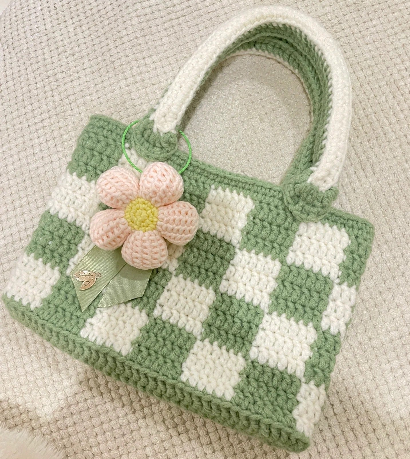 Pea Green Plaid Tote